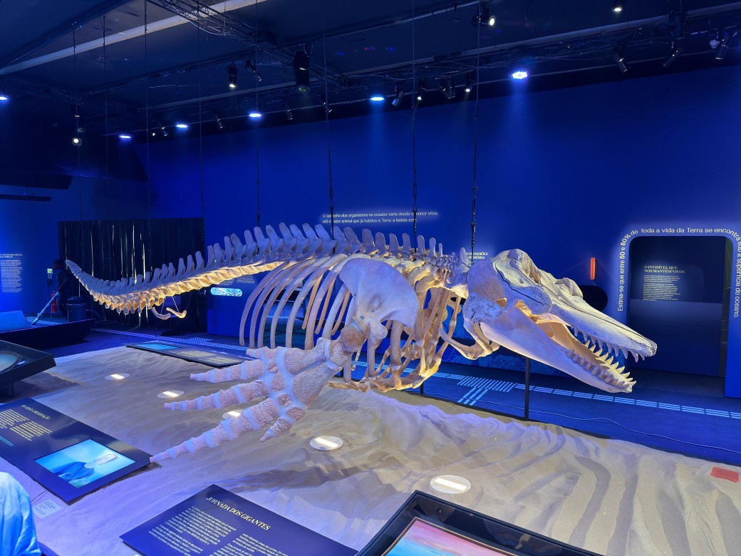 'Oceano: o mundo é um arquipélago'. A mostra traz ambientes que simulam o fundo do mar e um esqueleto de orca de 7m,que promete impressionar crianças de todas as idades. Até 19 de maio. 'Do cosmos a nós'. A exposição permanente aborda o impacto do homem no planeta. Nesta semana,a seção anteriormente conhecida como "Antropoceno" passou a se chamar "Onde Estamos?",trazendo um novo vídeo-instalação e uma experiência imersiva sobre o tempo presente.