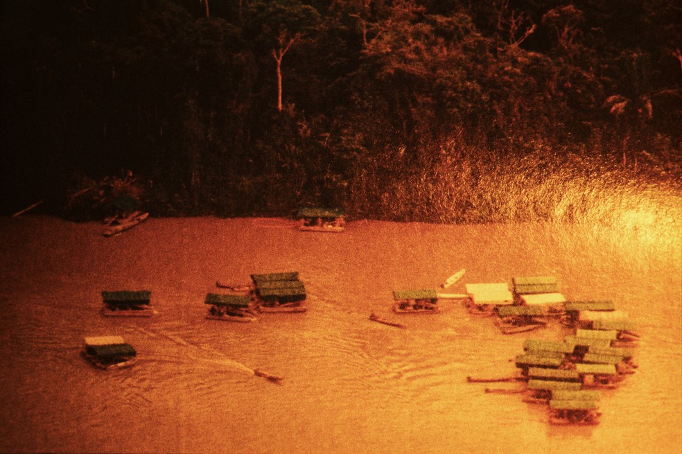 “Balsas ilegais na área Yanomami”,da série “Consequências do contato” (1989) — Foto: Divulgação/Claudia Andujar