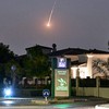 O rastro de um foguete do sistema de defesa antimíssil Domo de Ferro de Israel é visível sobre os céus de Jerusalém — Foto: JACK GUEZ / AFP