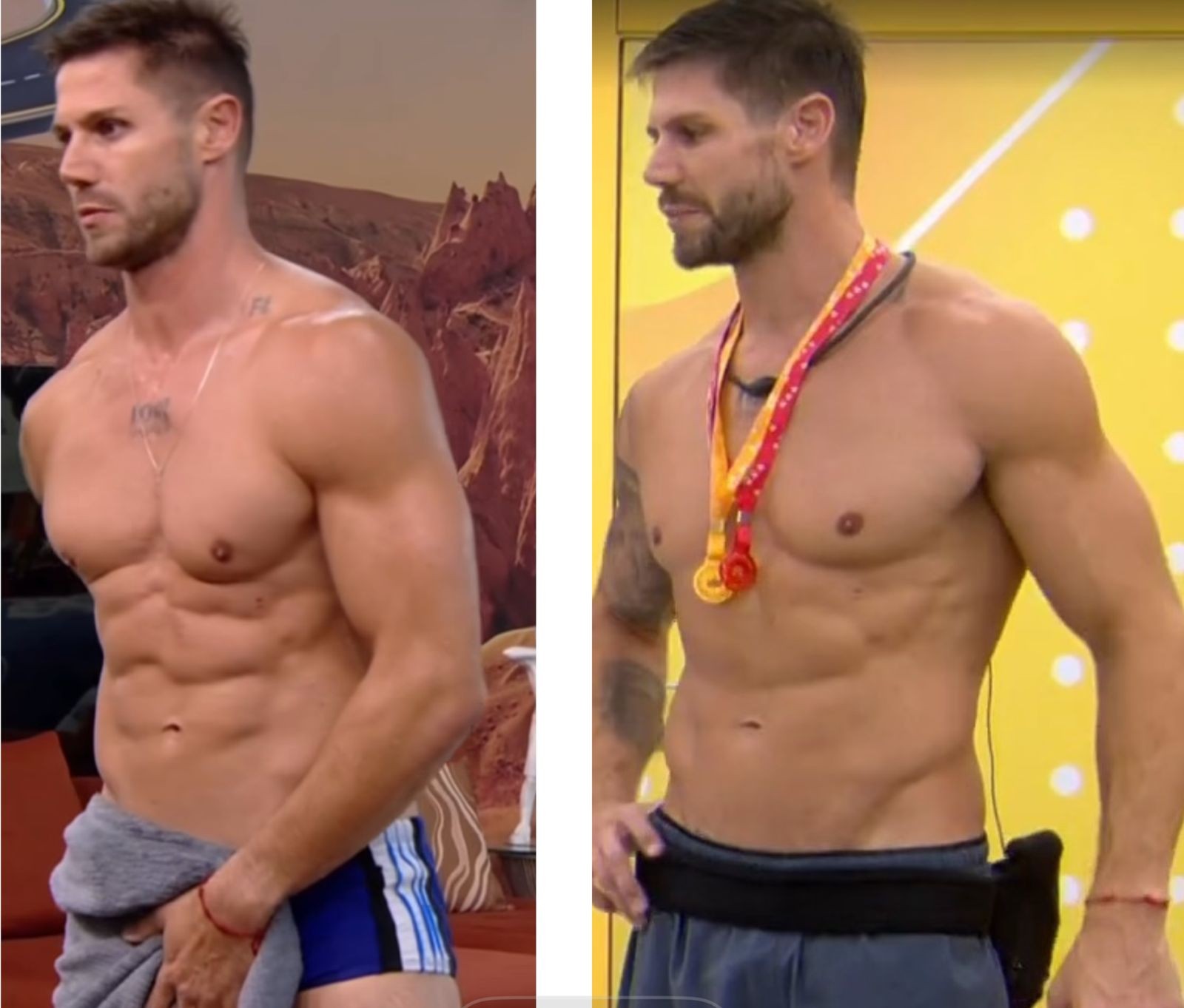 Alberto Cowboy antes do confinamento do "BBB 26" e agora — Foto: Reprodução/Instagram e Globoplay