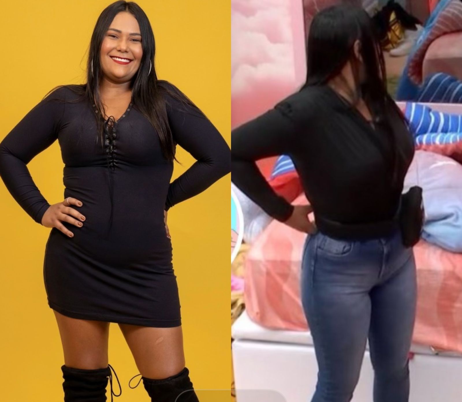 Chaiany antes do confinamento e agora — Foto: Reprodução/Instagram e Globoplay