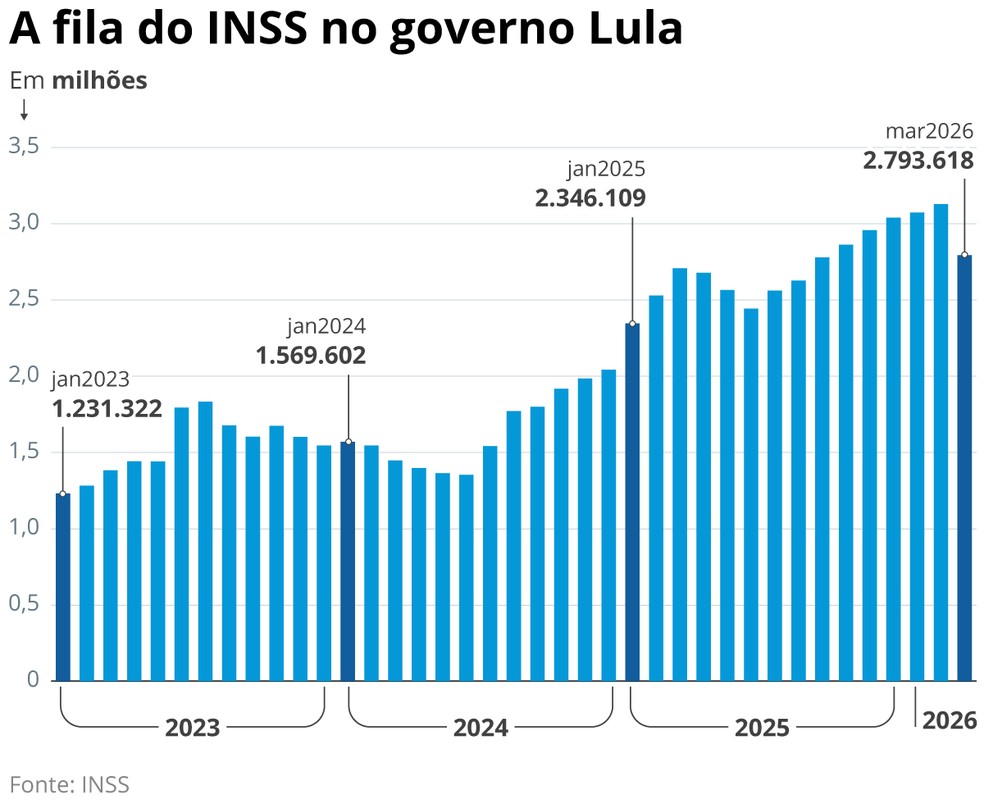 Fila do INSS durante a gestão Lula — Foto: Editoria de Arte