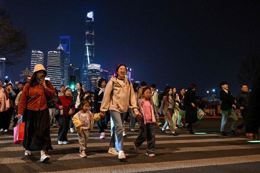 Pessoas caminham em rua de Xangai — Foto: Hector RETAMAL / AFP