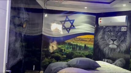 Já na parte interna da casa foi localizado um quarto cujas paredes tinham painéis com símbolos referentes ao Antigo Testamento da Bíblia,como a Estrela de Davi e um leão. No cômodo,havia apenas uma cama de casal e um ar-condicionado.