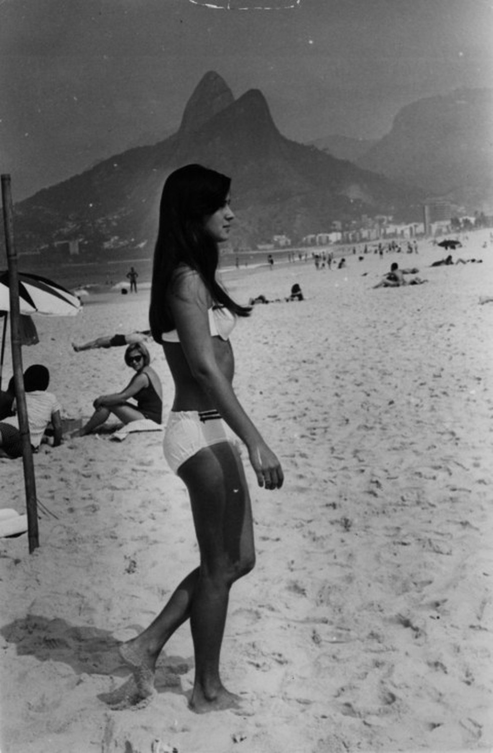 Helô Pinheiro na Praia de Ipanema na década de 1960 — Foto: Reprodução/Arquivo particular