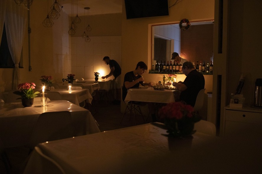 Clientes comem à luz de velas durante apagão em São Paulo — Foto: Edilson Dantas/ Agência O Globo/10/12/2025