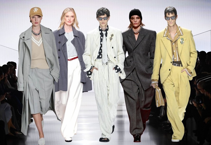 No lugar da rigidez de tecidos estruturados e entretelados,brilham materiais com fluidez que deixam a silhueta livre — Foto: Getty Images